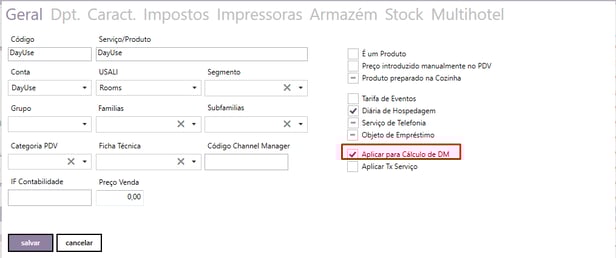 Diária R$200,00 + Serviço PET R$100,00, lançados automaticamente, portanto, sua DM será calculada em cima de R$300,00. Mas, caso seja lançado manualmente algum outro serviço, que deva ser contabilizado na DM, nessa opção, não será calculada.