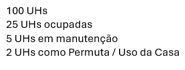 Quantidade de reservas / Número de UHs do hotel. Valor total - UHs em manutenção