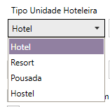 Tipo de Unidade Hoteleira: Selecionar o tipo de unidade que representa sua empresa, sendo hotel, pousada, resort e hostel.