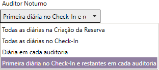 Auditor noturno: Escolha o padrão de como o serviço diária deve ser lançada nas reservas.
