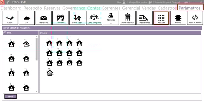 DICA: Em criação de UH no sistema, deve arrastar a casinha da nova UH para o lado direito, para que reflita no rack.