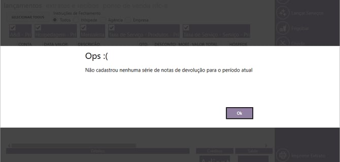"Não cadastrou nenhuma série de devolução para o período atual".