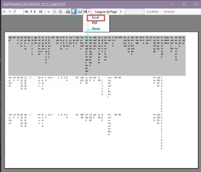 Neste, é possível ter acesso a várias informações dos hóspedes e reservas, como por exemplo: Contato do hóspede, empresa, datas de in e out.