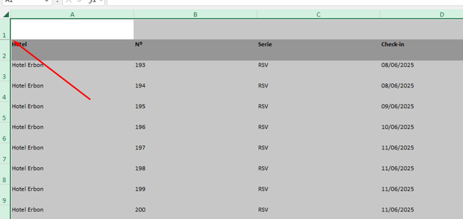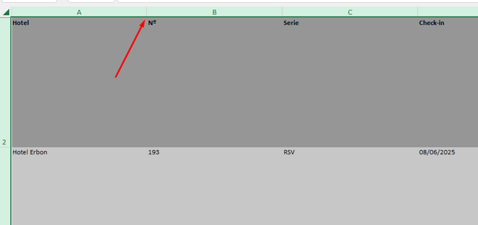 - Clique no divisor entre a letra A e B e arraste para a direita, fazendo com que todas as colunas aumente o tamanho: