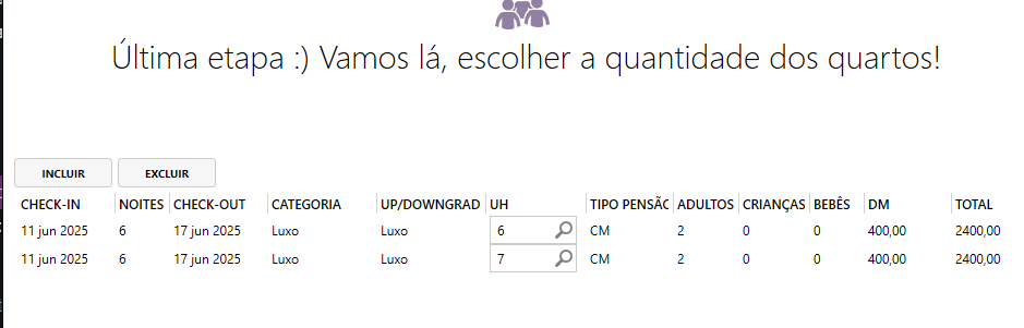 - Inserir o período em que esse grupo ficará hospedado no hotel;