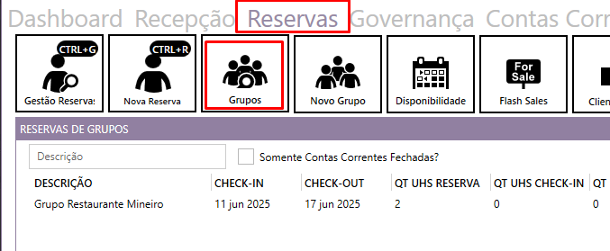 PMS → Reservas → Grupos → Abra o Grupo → Alterar Reservas